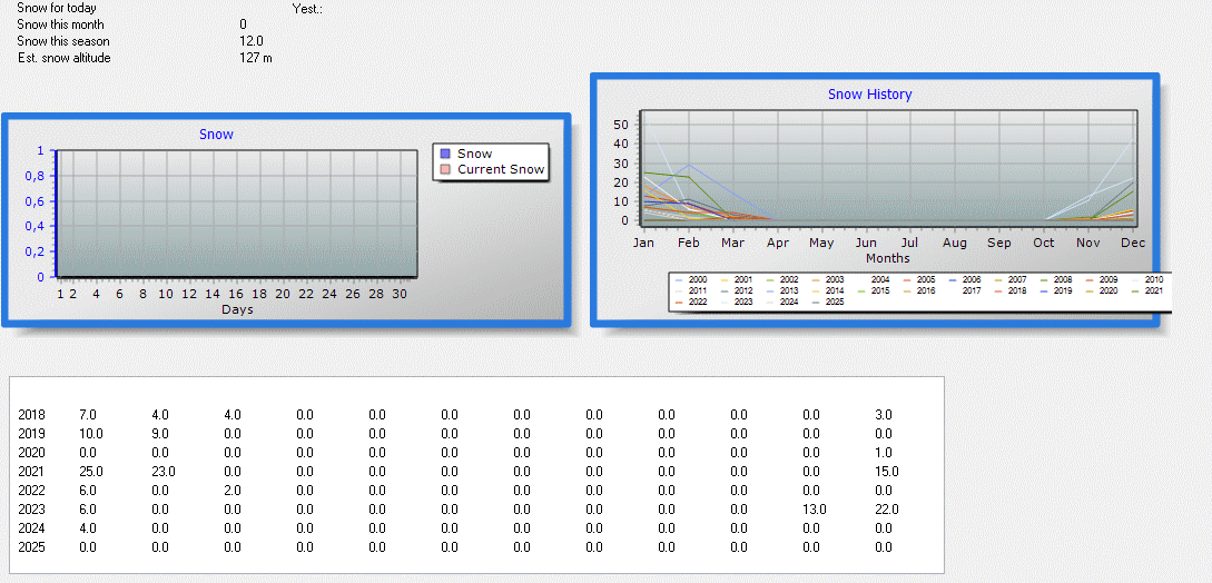 Record low temperature: -23.2 oC at: 08:09 on: 27 Jan 2010